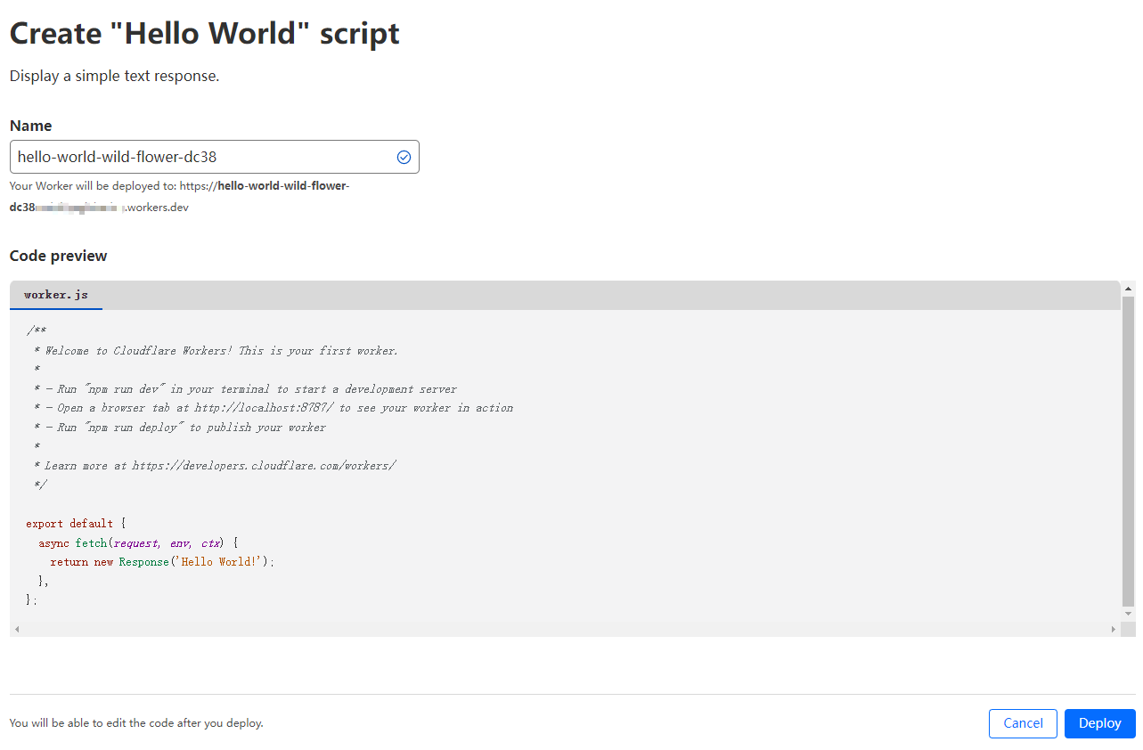 设置workers的名称,点击“Deploy”按钮